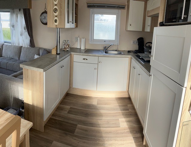 Deze gezellige stacaravan ziet er nog als nieuw uit.